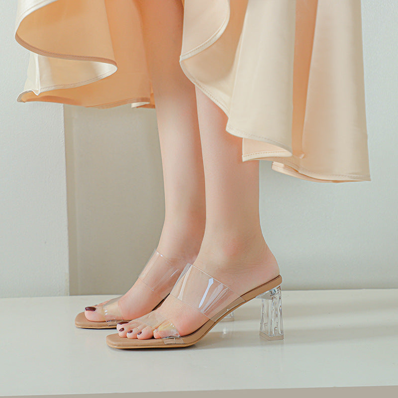 Træd med selvtillid ind i rampelyset med disse elegante klare blokhæls-mules. Uanset om du gør dig klar til en særlig lejlighed eller ønsker at tilføje flair til dit hverdagslook, tilbyder disse mules den perfekte blanding af raffinement og komfort.