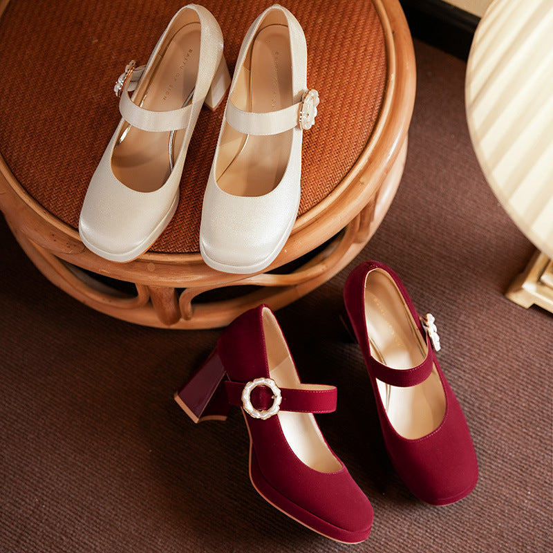 Gå med finesse i vores elegante blokhælede Mary-Jane-pumps til damer, der er dekoreret med en fantastisk perlebuckle. Disse pumps forener klassisk design med moderne accenter og er perfekte til enhver lejlighed.