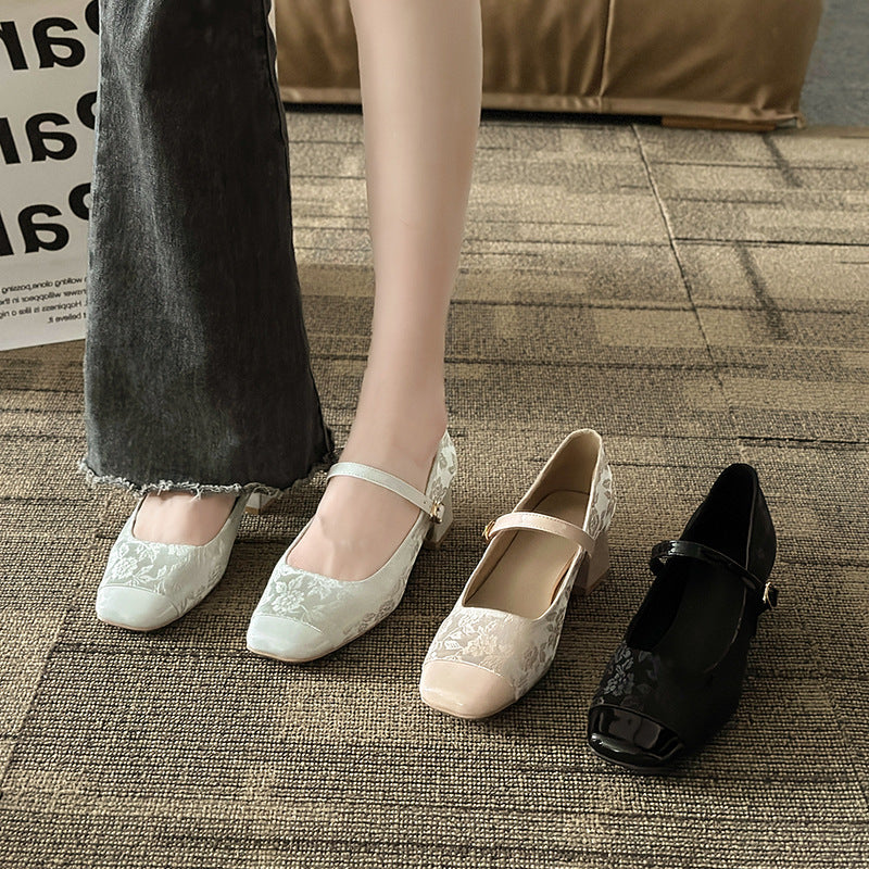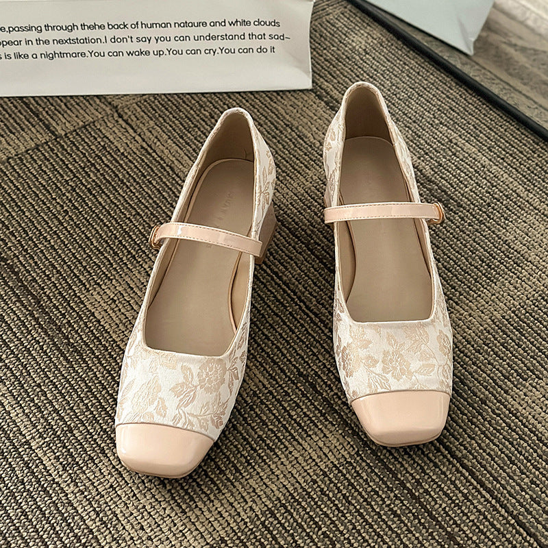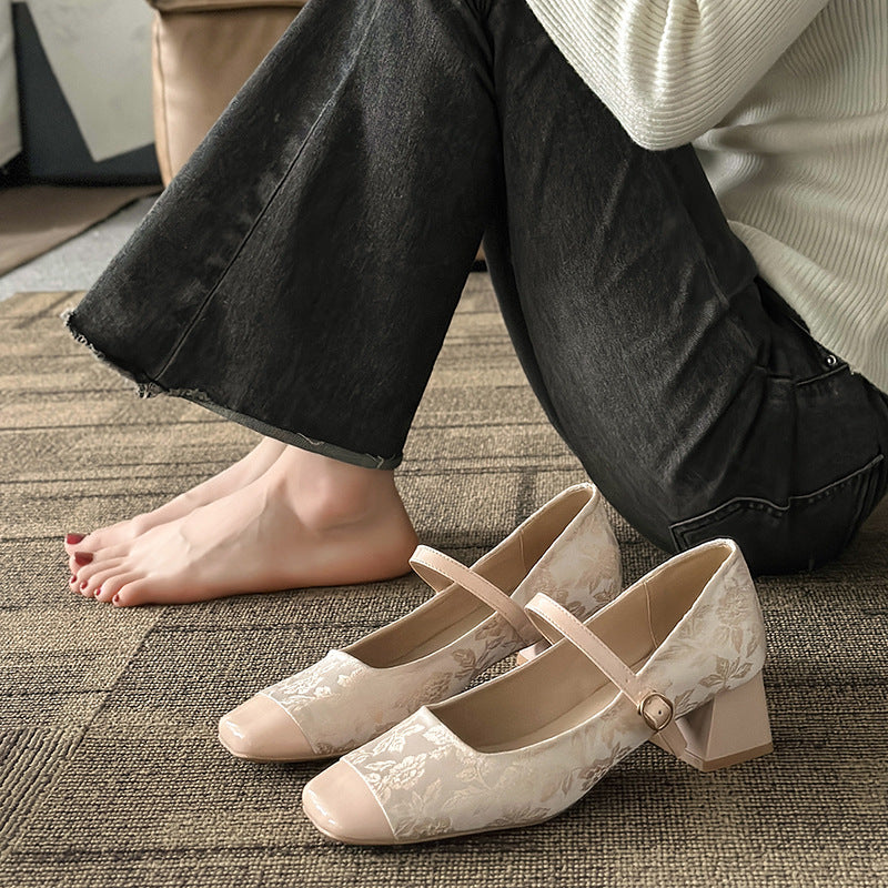 Træd stilfuld og komfortabelt – tilføj vores elegante blomster mønster mid-heel Mary Jane sko til din samling i dag!