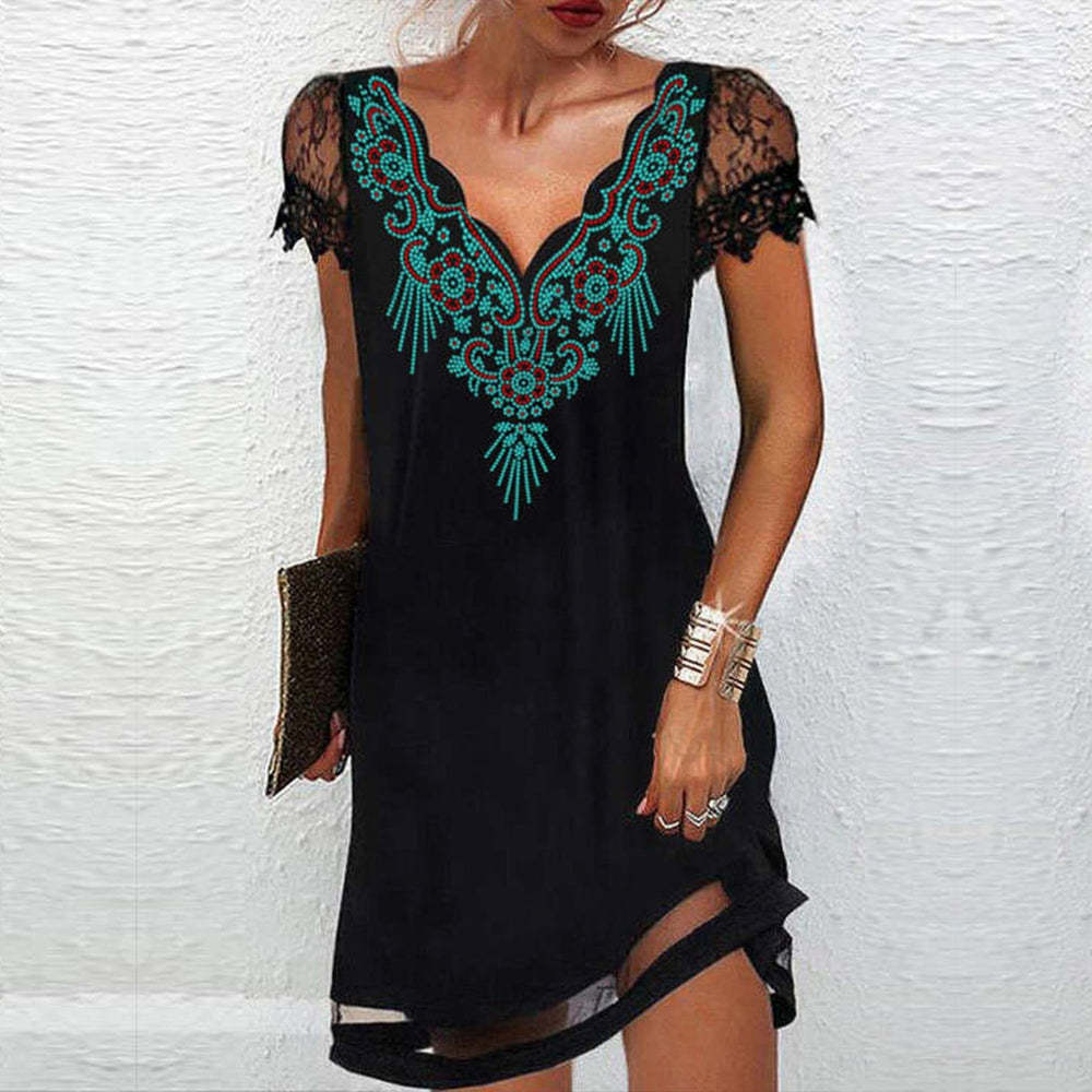 Fremstillet af højkvalitets, åndbart stof, sikrer denne kjole komfort hele dagen og tilbyder en flatterende pasform til alle kropstyper. Det lette materiale falder elegant, fremhæver din silhuet, mens de feminine spidsdetaljer tilfører et strejf af raffinement.