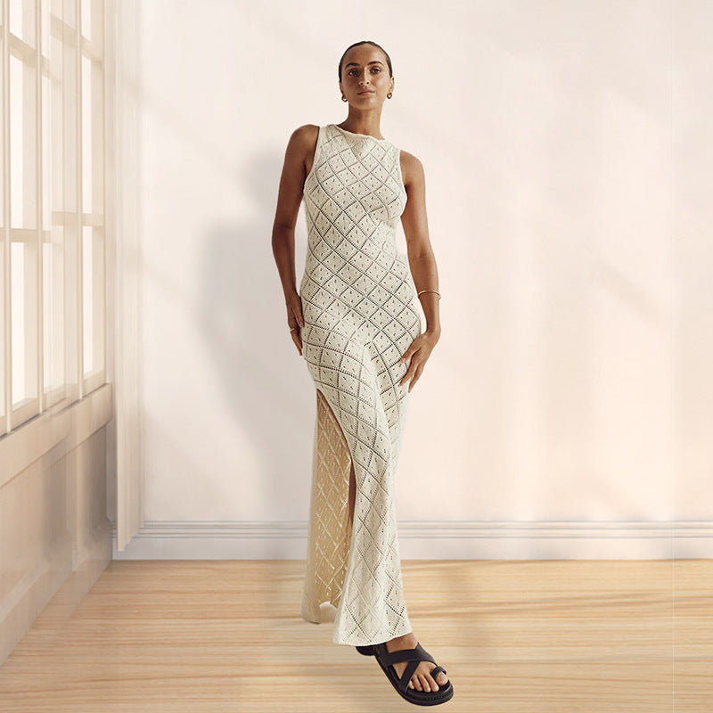 Vi præsenterer det elegante hæklede maxikjole til damer fra Stilla, designet til at berige din sommergarderobe med sit fantastiske håndværk og stilfulde tiltrækningskraft.