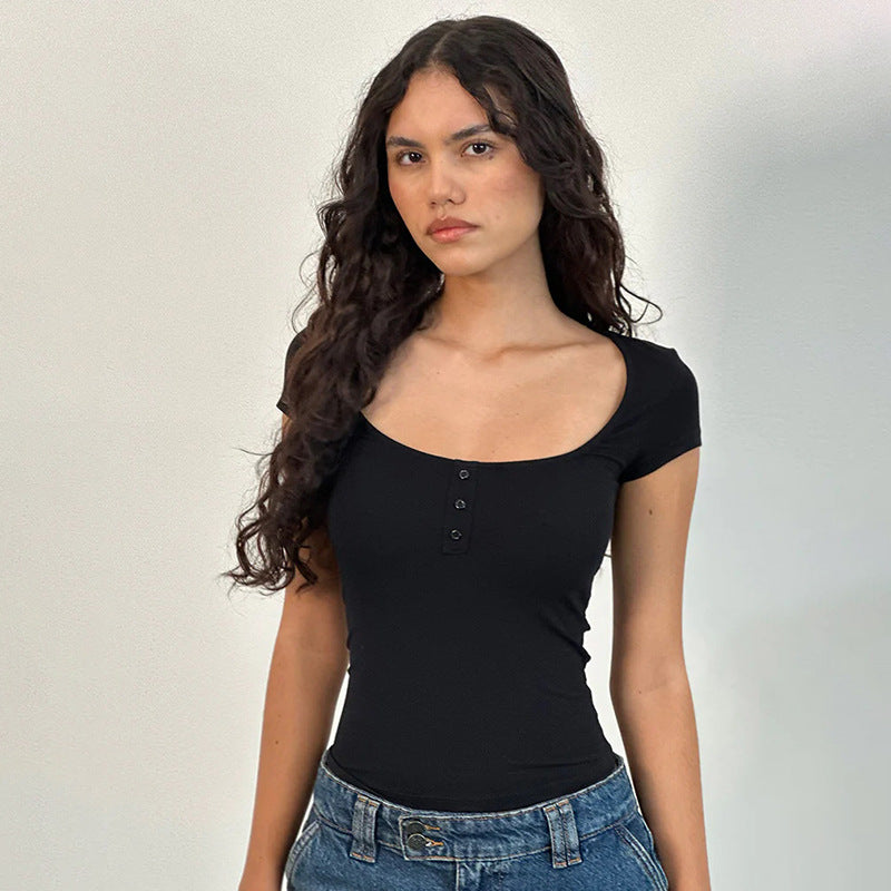 Opdag den perfekte blanding af stil og komfort med vores dames cropped scalloped neck T-shirt. Designet til den moderne kvinde, har dette top en flatterende bølgetudskæring, korte ærmer og en figursyet silhuet, der fremhæver din figur.