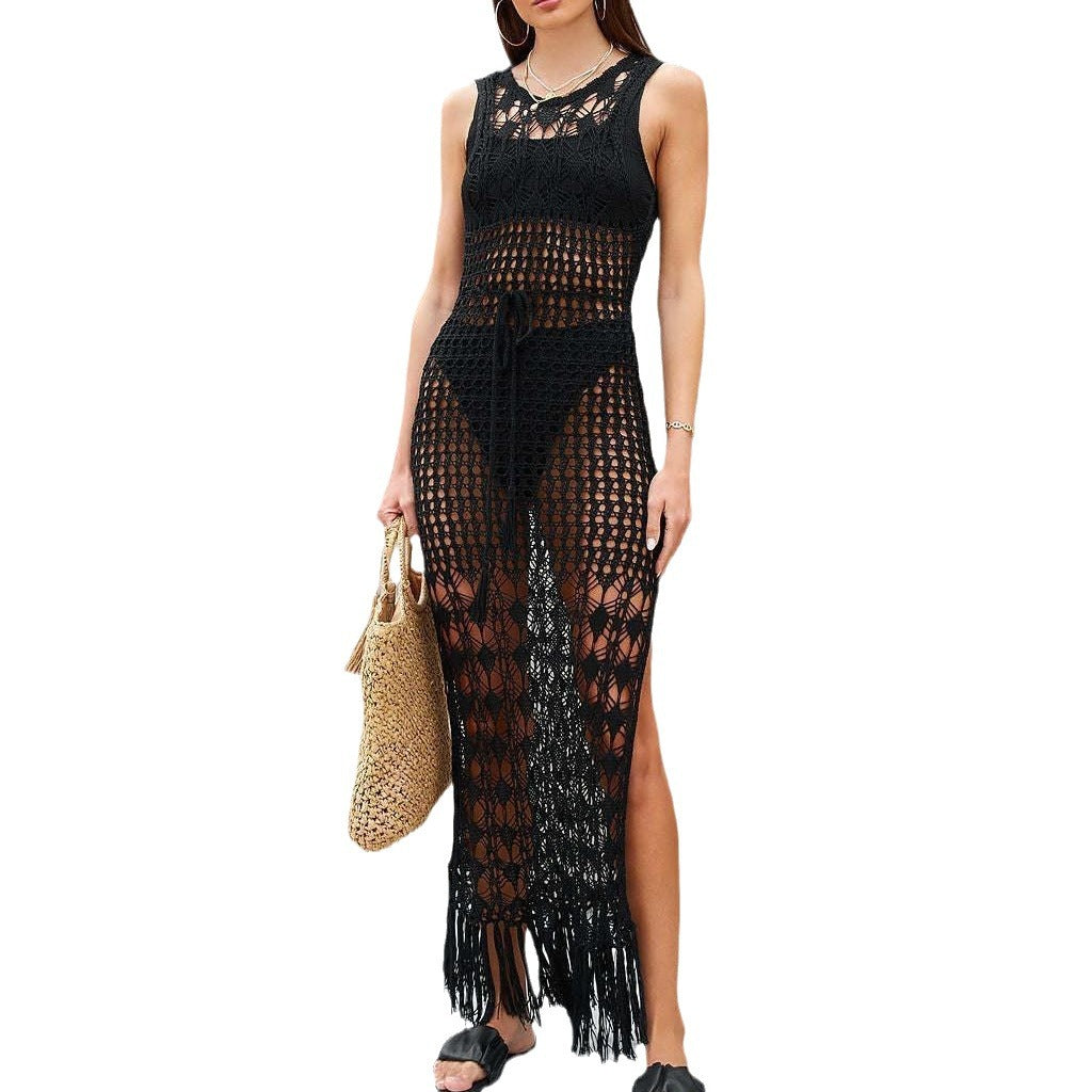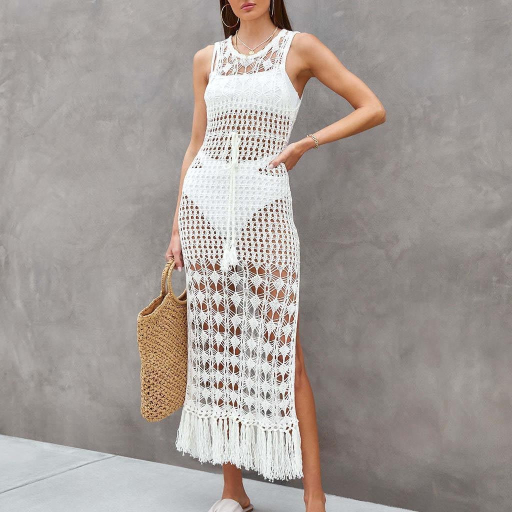 Træd frem med selvtillid og nyd sommerstemningen med dette uundgåelige stykke. Forbedr dine strandudflugter og sommerfestivaler med maxikjolen med åben ryg i hækling til damer fra Stilla!