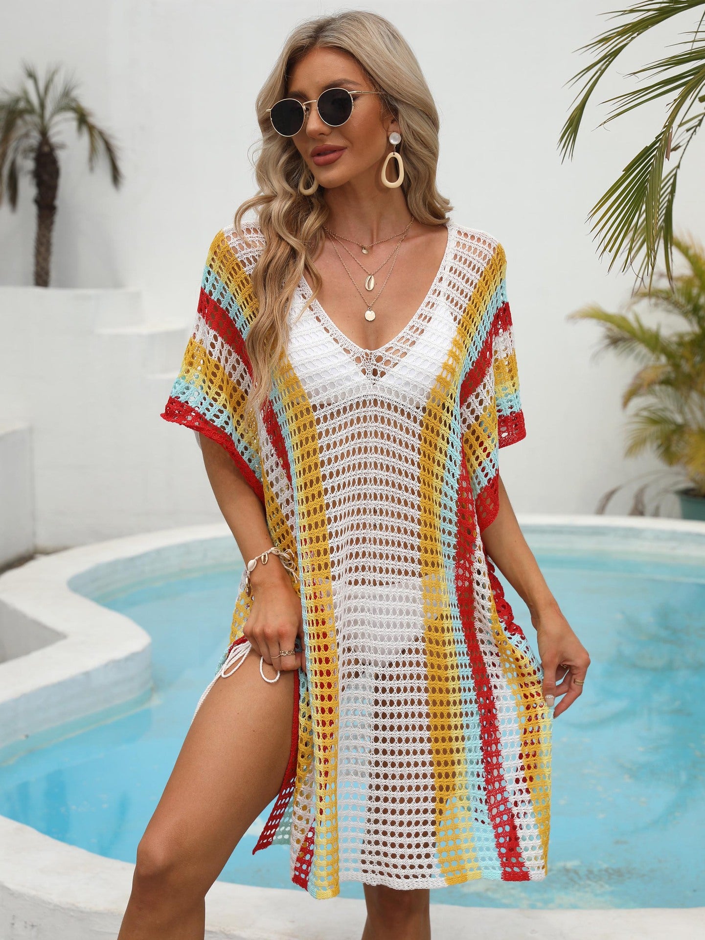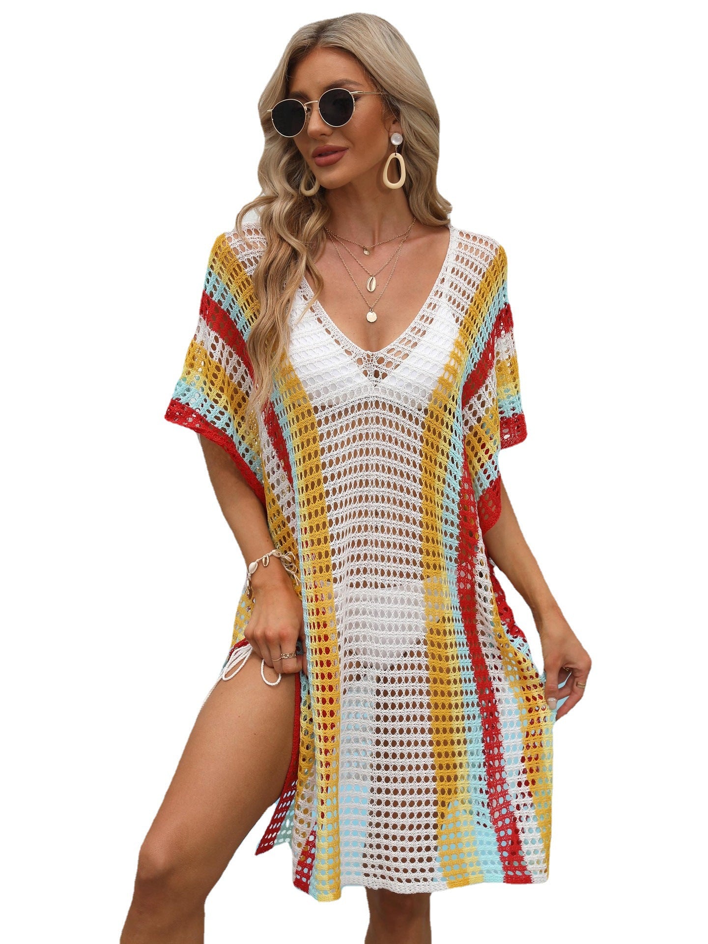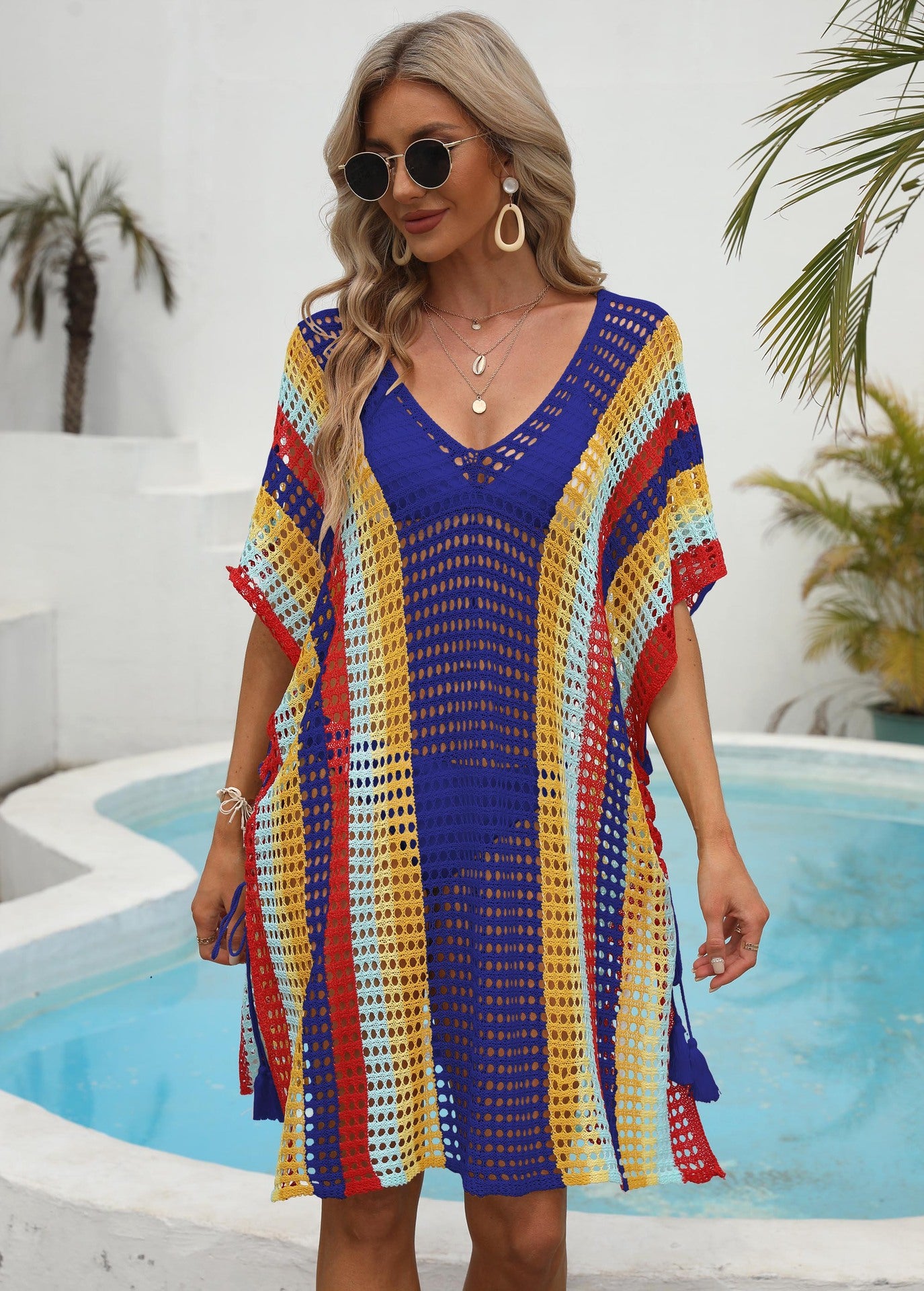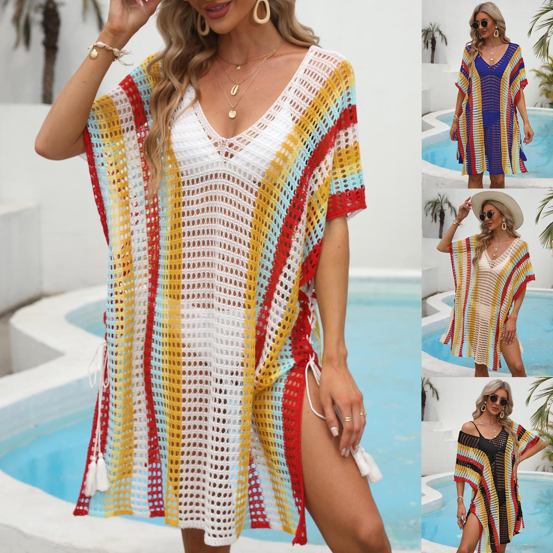 Gå ikke glip af denne essentielle del af din sommergarderobe! Forny din strandmode med den åbne mesh-strik strandkjole til damer fra Stilla i dag.