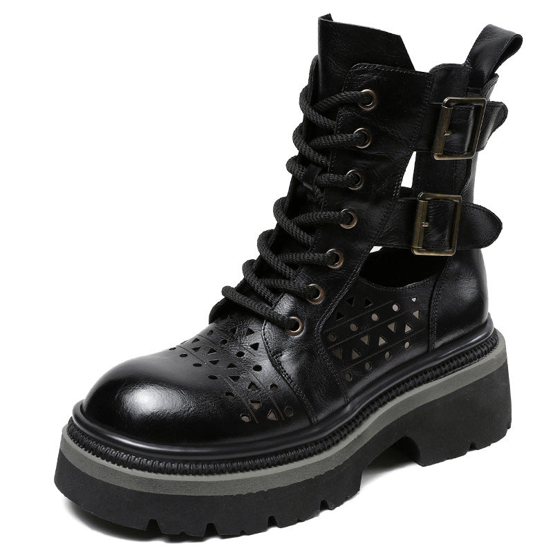 Gå med selvtillid i vores dame Cut-Out Chunky Ankelstøvler, en perfekt kombination af komfort og stil, der opgraderer din skokollektion. Disse unikke støvler har iøjnefaldende cut-out-designs, der både tilbyder luftgennemstrømning og en trendy æstetik.