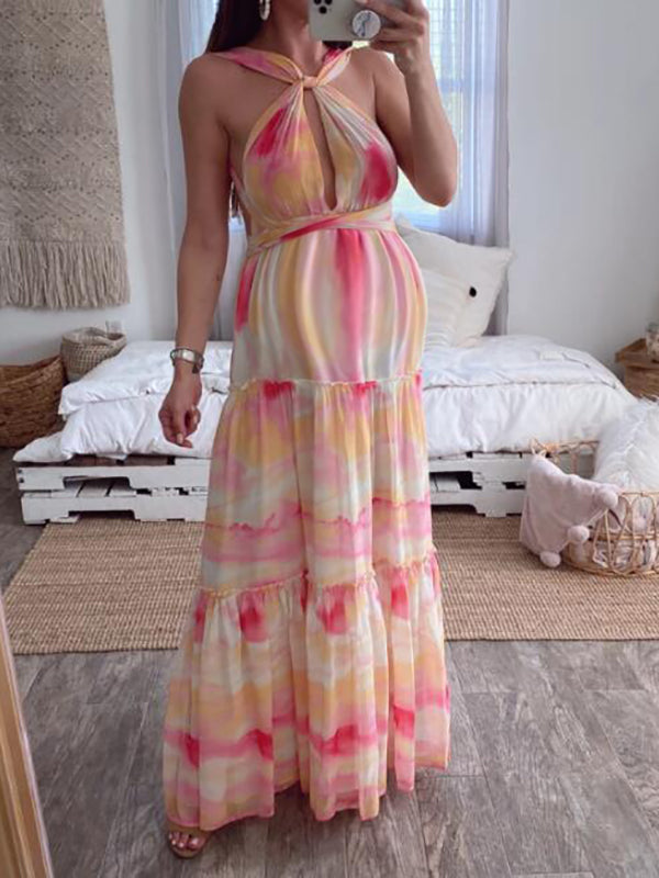 Stilla | Gravidkjole Til Farveskift Snøring Ved Halsen Gravid Bohemisk Maxi Kjoler Kjole