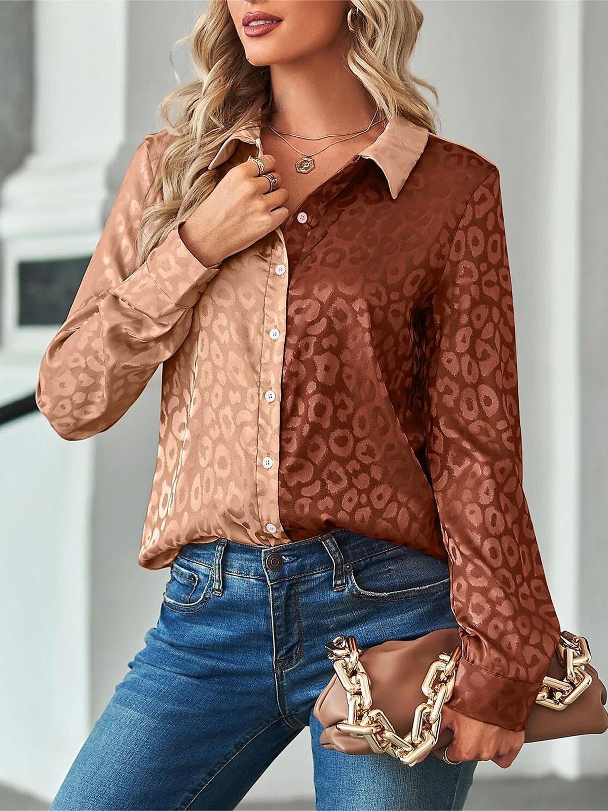 Stilla | Kvinders Bluser Farveblokering Personlighed Løs Langærmet Bluse