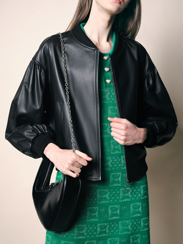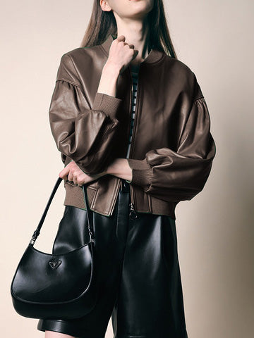 Stilla | Kvinders Jakker Ensfarvet Lynlås Kort Læderjakke