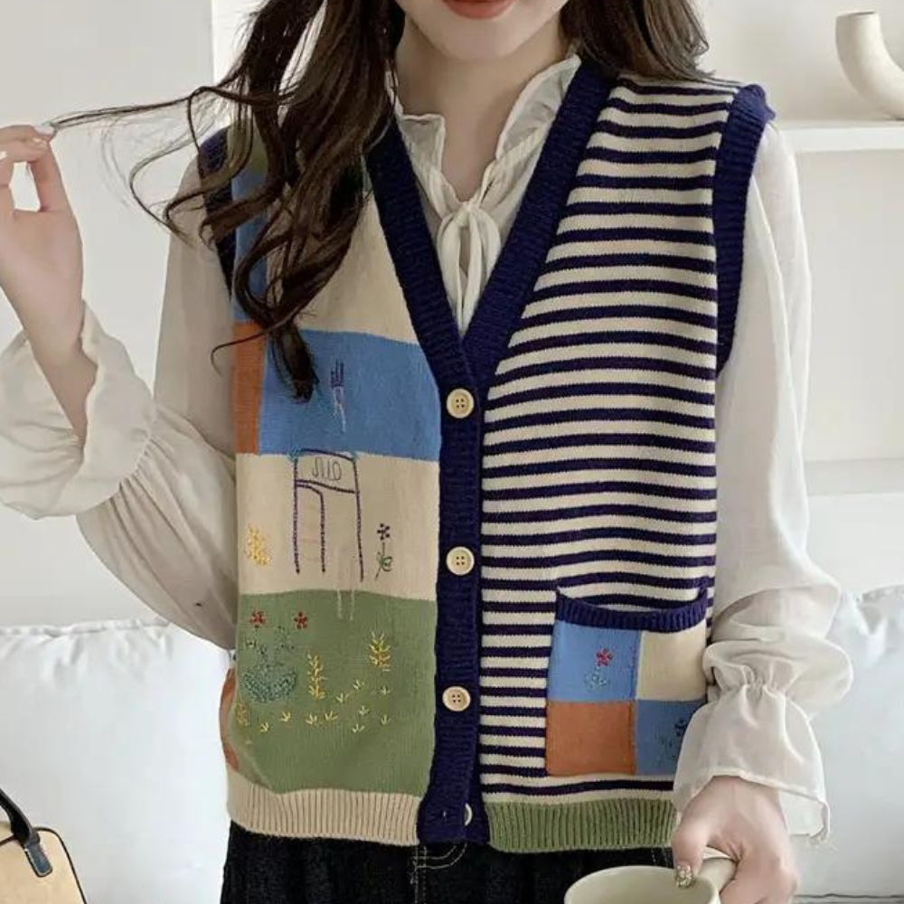 Stilla - Elegant Strikket Vest til Damer repræsenterer den perfekte blanding af stil og funktionalitet. Dets omhyggeligt designede striktilbehør tilføjer både struktur og dybde, hvilket gør det til et iøjnefaldende tilbehør til lagdeling hele året rundt. Uanset om du skal på arbejde, til sociale arrangementer med venner eller nyde en afslappet dag derhjemme, vil denne vest nemt tilføre værdi til dit look.