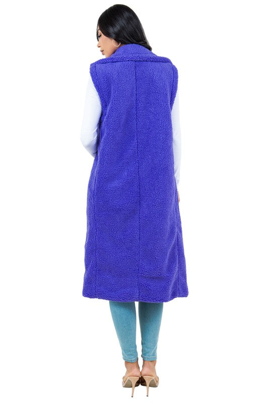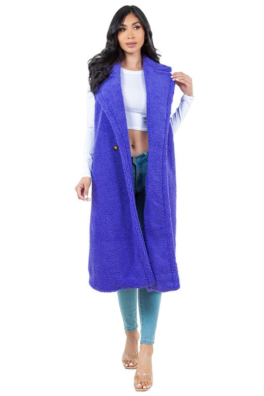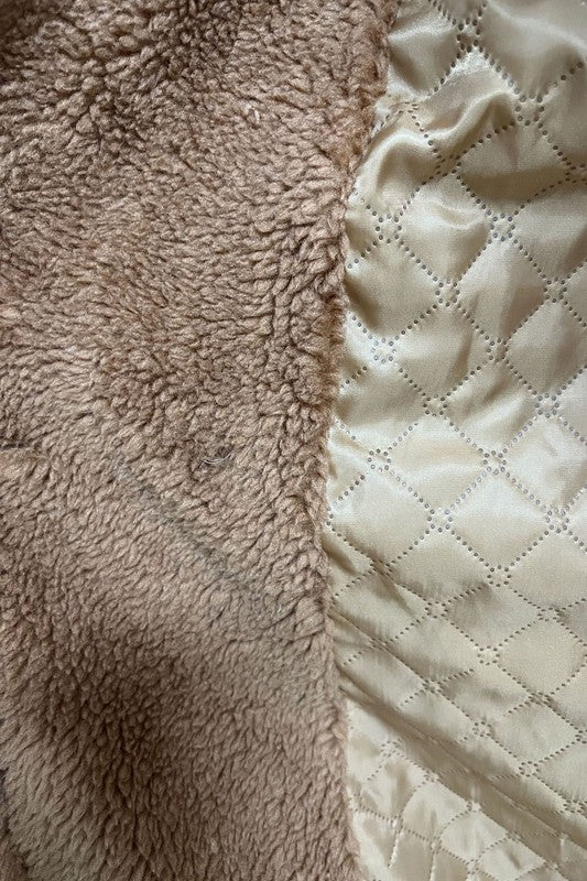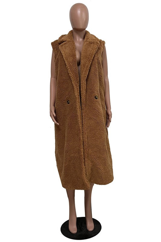 Oplysninger - teddy fleece jakke, oversized stil, ærmeløs oversized design, én størrelse der kan gå op til 2XL