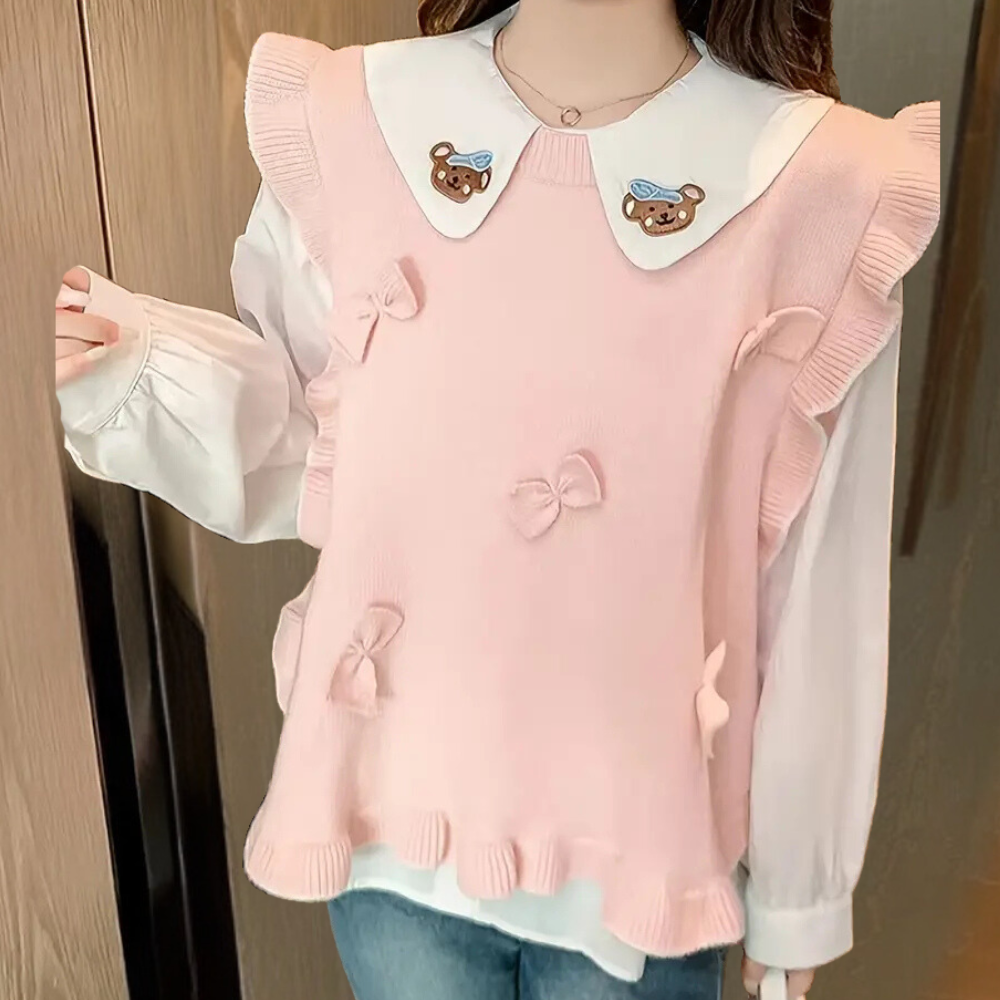 Forvandl dine lag-på-lag looks med Stilla Udenærmet Strikvest med Sløjfe til Damer, som forener elegance med praktisk anvendelighed.